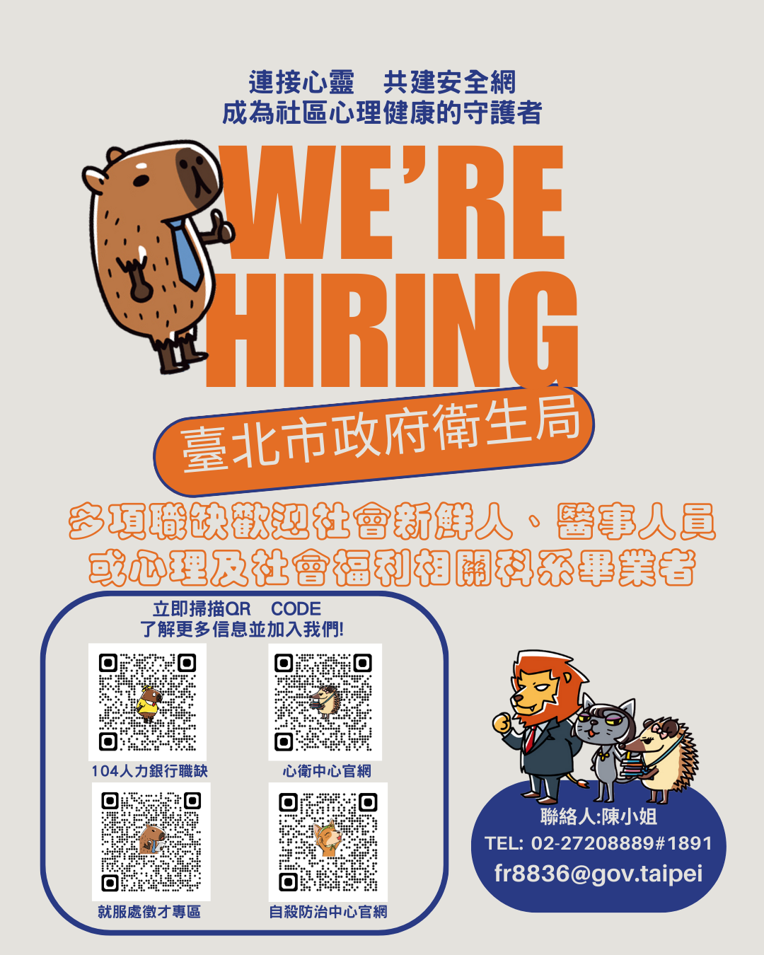 【#一起讓城市更有溫度‼️臺北市政府衛生局社安網 開始招募啦‼️】