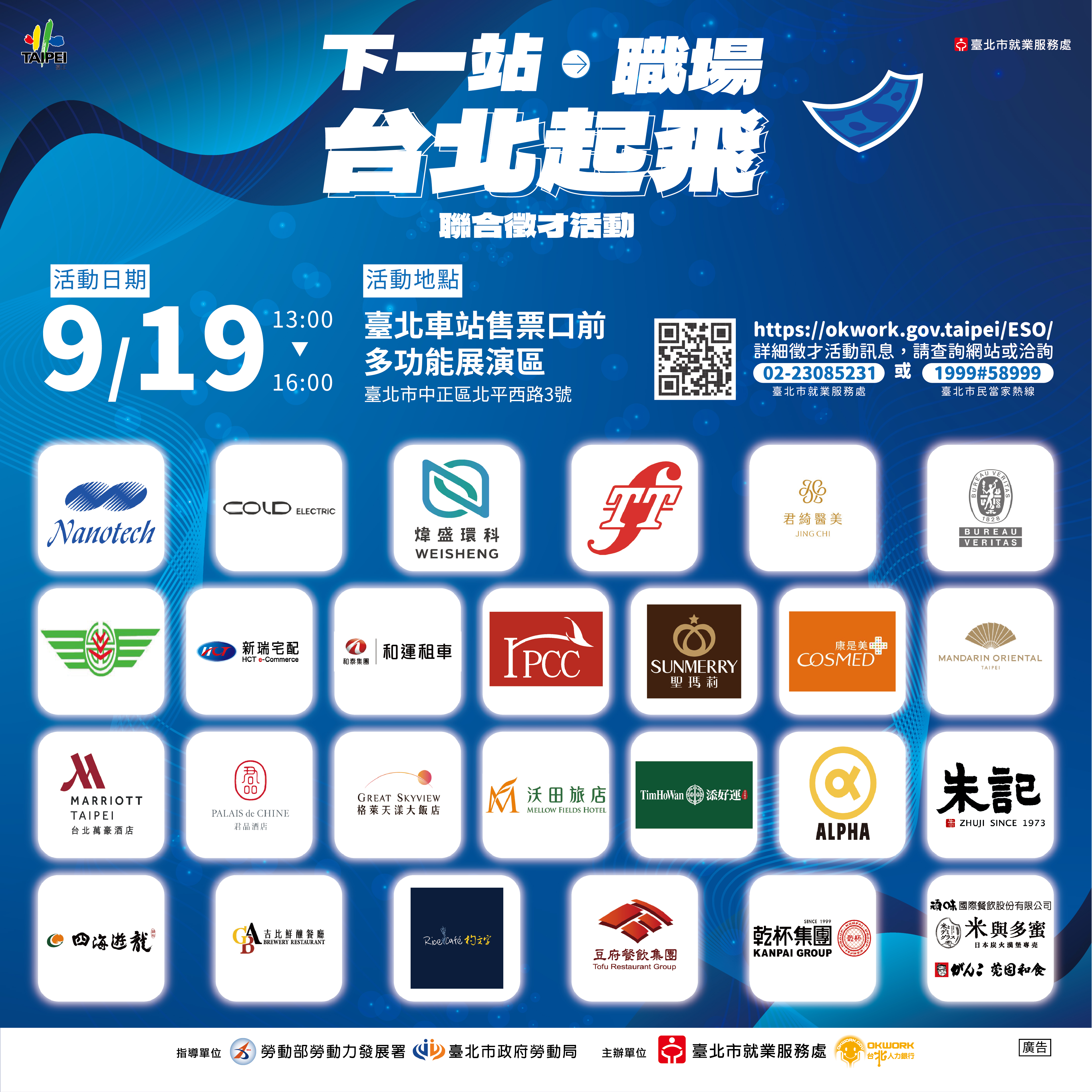 【Taipei City Employment Service Office】The joint recruitment event "Next Stop: Workplace · Taipei Takes Off" on September 19th warmly welcomes job seekers and interested students to actively participate.