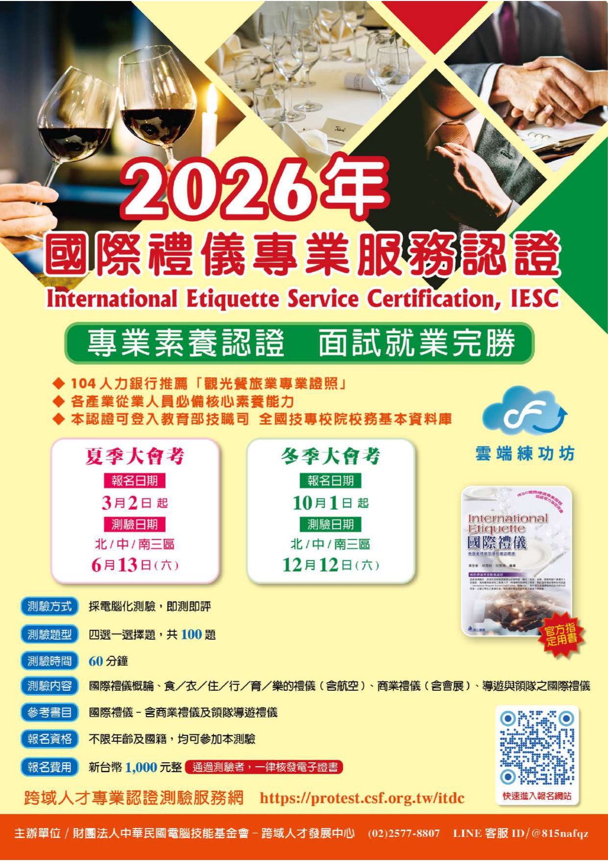 【財團法人中華民國電腦技能基金會】本會執行 2026 年跨域人才專業認證夏季大會考,鼓勵學生踴躍報考。