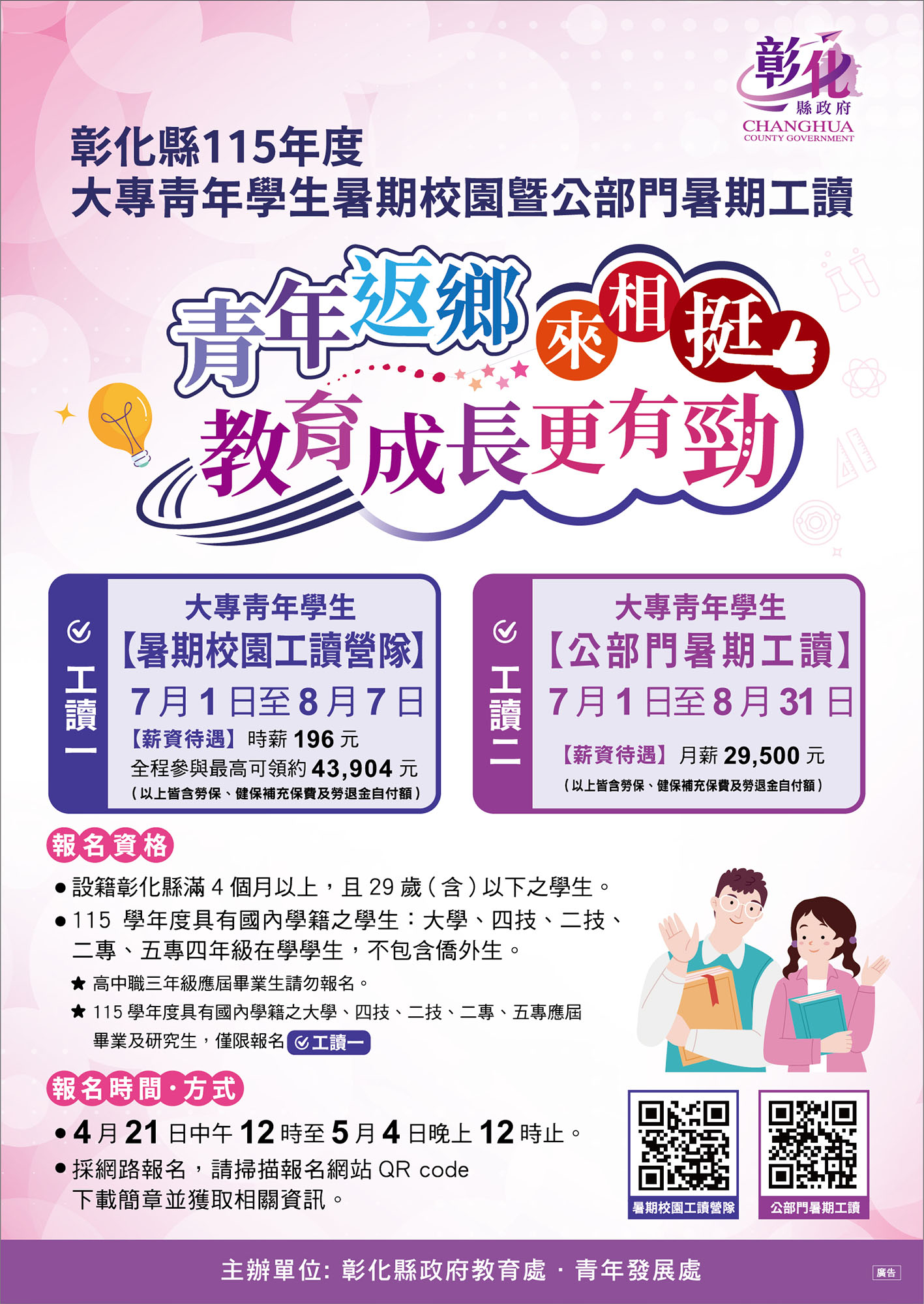 【彰化縣政府】115年度大專青年學生暑期校園暨公部門暑期工讀